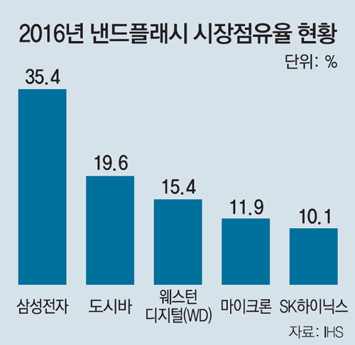 目前“全球半導體市場的大勢是Nand閃存”,這一點毫無爭議。這是因為可穿戴式、大數(shù)據(jù)、物聯(lián)網(wǎng)(IoT)、自動駕駛汽車等被稱為第4次產(chǎn)業(yè)革命時代的主要關鍵詞的新技術都需要相當數(shù)量的半導體。全球半導體企業(yè)們爭先恐后地把新產(chǎn)品從Dram改成Nand閃存也是處于這個原因。
