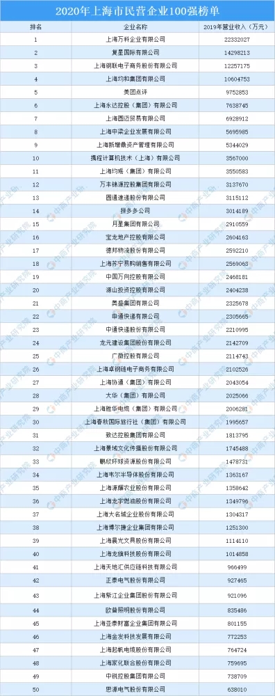 2020年上海民營企業(yè)百強(qiáng)排行榜