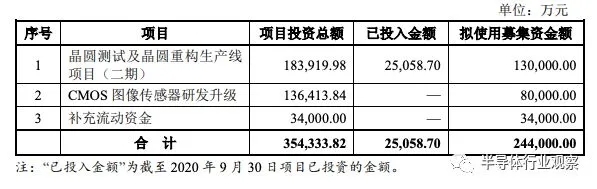 據(jù)介紹,晶圓測(cè)試及晶圓重構(gòu)生產(chǎn)線項(xiàng)目由北京豪威下屬子公司豪威半導(dǎo)體實(shí)施。項(xiàng)目實(shí)施地點(diǎn)為上海市松江出口加工區(qū)茸華路,該項(xiàng)目總投資 183,919.98 萬(wàn)元。截至 2020 年 9 月 30 日,該項(xiàng)目已使用前次募集資金 25,058.70 萬(wàn)元。本次使用募集資金 130,000.00 萬(wàn)元。本次募集資金到位后,韋爾股份將通過(guò)增資、借款或法律法規(guī)允許的其他方式將資金投入豪威半導(dǎo)體。