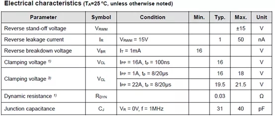 封裝及電性參數:( TYPE-C : VBUS-20V 快充電源線過壓防護 )