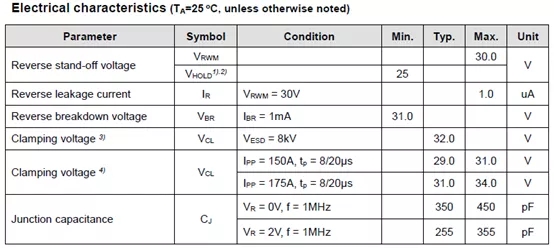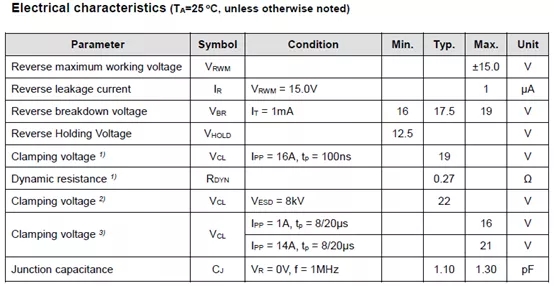 封裝及電性參數:( TYPE-C : D+D- 信號線過壓防護 )