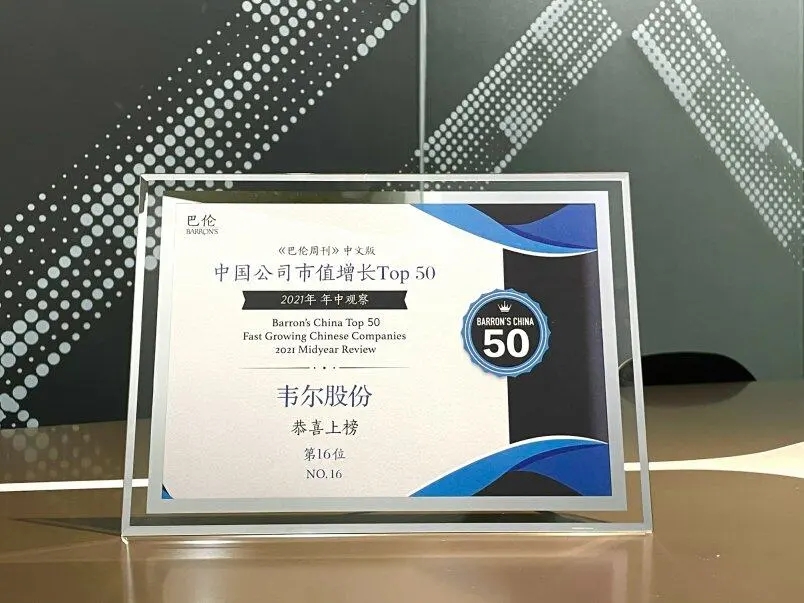 韋爾股份入選《巴倫周刊》中文版中國(guó)公司市值增長(zhǎng)50強(qiáng)