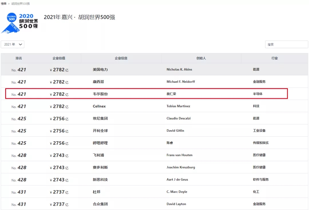韋爾股份入選《 2021 胡潤世界 500 強》,乘風(fēng)破浪順勢而行