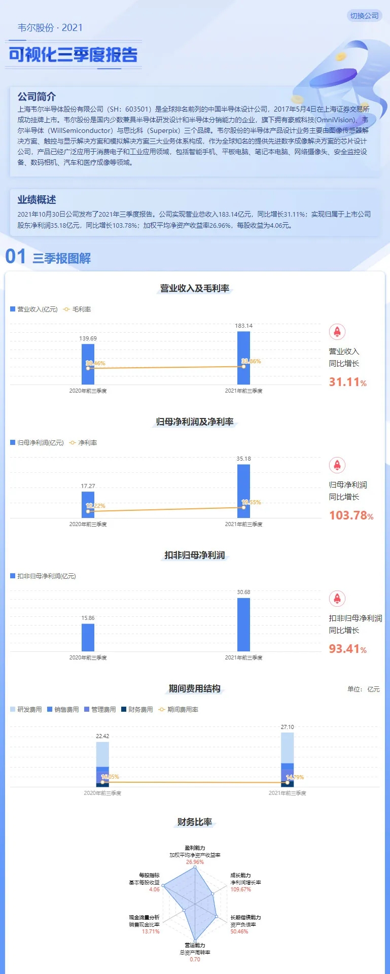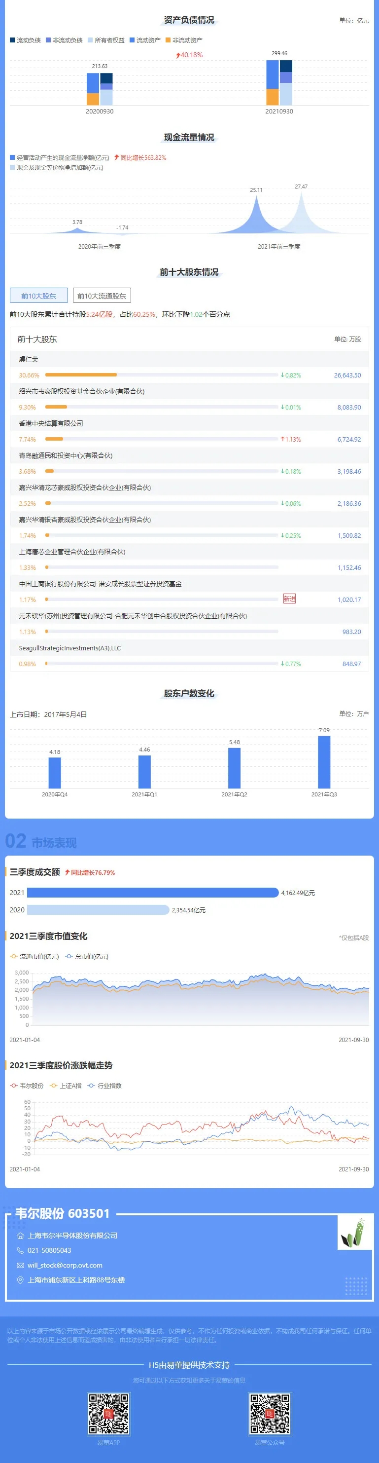 韋爾半導(dǎo)體2021年三季度報(bào)告:新產(chǎn)品線不斷放量,前三季度凈利同比增長103.78%