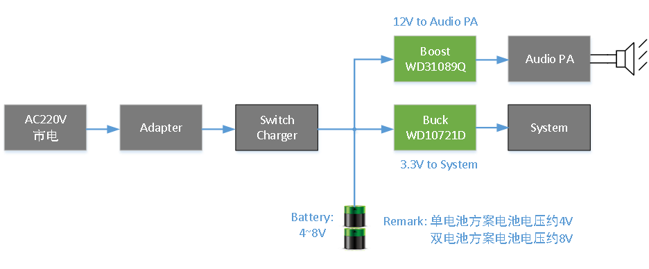 忙碌的生活,來點(diǎn)音樂才能調(diào)節(jié)氣氛。便攜式藍(lán)牙音箱因?yàn)楹唵我子?、方便攜帶、受到消費(fèi)者的青睞。對于這種隨身小音箱來說,良好的音質(zhì)、足夠大的音量都是不可或缺的。為此市場上主流的藍(lán)牙音箱通常需采用升壓電路將電池電壓升壓為音頻功放芯片供電,以獲得更大的不失真輸出功率。