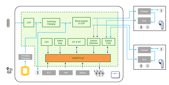 WS49T31xQ 系列基于 Arm® Cortex®-M3 內(nèi)核,主頻達(dá)到 120MHz,最大可提供 1MB Flash 存儲(chǔ)空間,96KB SRAM。很多應(yīng)用場(chǎng)景要求有足夠的 memory 空間,以 TWS 耳機(jī)應(yīng)用為例,中高端產(chǎn)品在日常使用上往往感覺(jué)更友好,原因之一是充電盒內(nèi)的 MCU 運(yùn)行了 OS,可以實(shí)時(shí)應(yīng)對(duì)多種任務(wù)。此外,中高端 TWS 耳機(jī)普遍要支持耳機(jī)和耳機(jī)盒固件升級(jí)功能,讓消費(fèi)者使用無(wú)憂,也提升了對(duì)產(chǎn)品的滿足感。這些都對(duì) MCU 配置有較高的要求,8 位 MCU 是難以勝任的。
