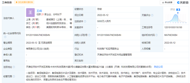 5月12日,豪威北方集成電路有限公司于成立,注冊資本5000萬元,法定代表人為王崧;據(jù)股權(quán)穿透顯示,該公司由韋爾股份100%控股。