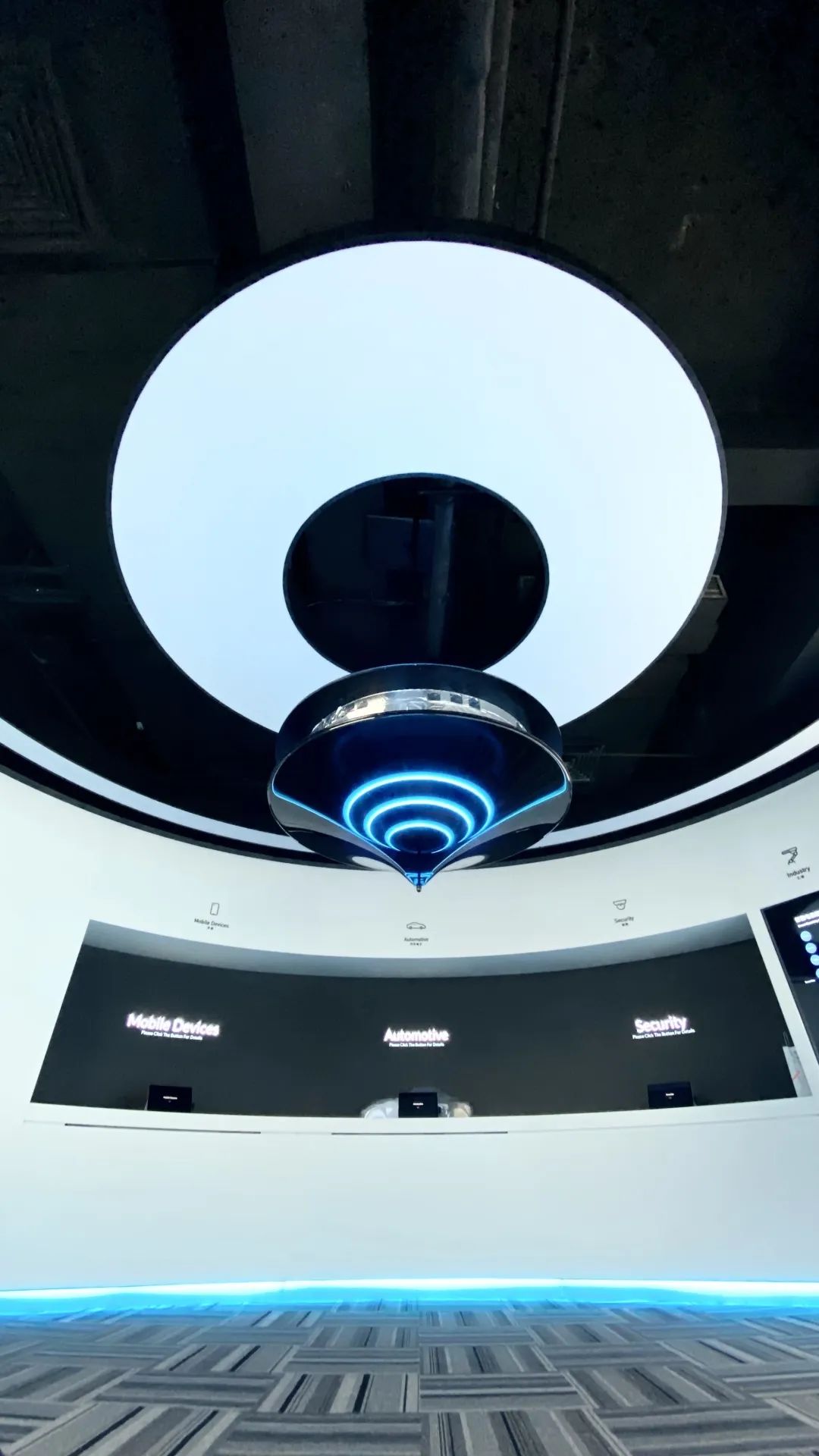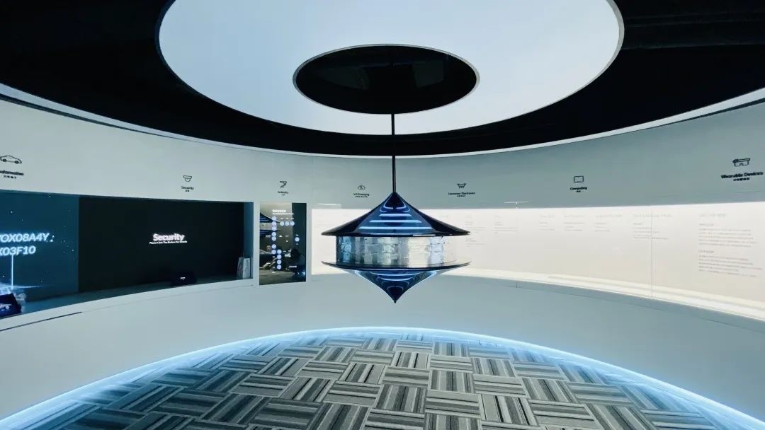 走進(jìn)體驗(yàn)中心,展廳中心的飛碟造型藝術(shù)裝置映入眼簾。燈光未開啟時(shí),幽藍(lán)色的“飛碟”漂浮在展廳之中,宛如浩瀚宇宙中的“神秘力量”?!帮w碟”之于“宇宙”,豪威之于行業(yè)??萍嫉陌l(fā)展打破未知的邊界,豪威的未來將有無限可能。