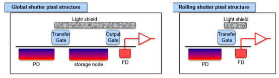 為解決拍攝高速運動物體畫面失真現(xiàn)象,2014 年豪威研發(fā)出 CMOS 全局快門技術(shù)OmniPixel®3-GS。OmniPixel®3-GS 全局快門技術(shù)為每個像素增加采樣存儲單元,所有像素點曝光時間起始點相同,完成曝光后再順序讀出。
