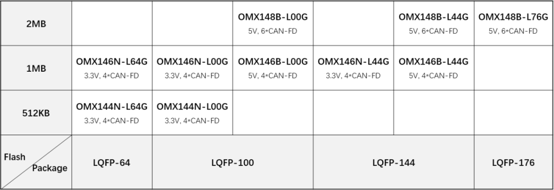 OMX14x系列中OMX14xN為全國產(chǎn)化供應(yīng)鏈的車規(guī)MCU。從Fab,到封測全部為國產(chǎn)廠家。