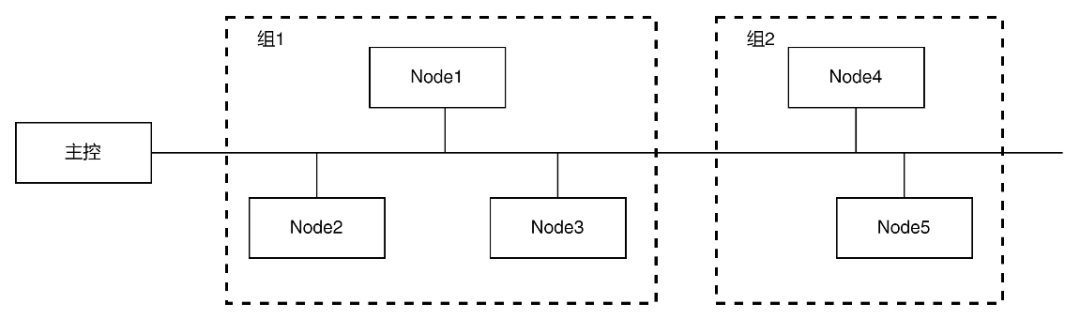 喚醒邏輯:節(jié)點(diǎn)只有收到所屬組內(nèi)的特定報(bào)文(通常是網(wǎng)絡(luò)管理報(bào)文),才被喚醒。主控發(fā)送的特定報(bào)文只能將node1-3喚醒,而node4和node5仍處于睡眠狀態(tài)。