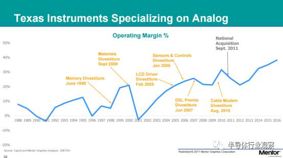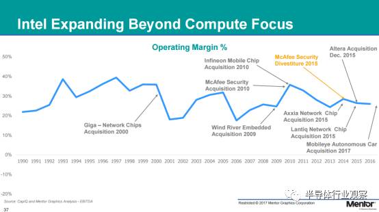通過(guò)收購(gòu)進(jìn)一步專業(yè)化公司的原有產(chǎn)品可有助于提升公司的盈利,而如果通過(guò)收購(gòu)擴(kuò)展產(chǎn)品線,則不一定能幫助公司提升盈利。Wally列舉了以下兩個(gè)例子,“TI在之前也發(fā)展諸多領(lǐng)域,但現(xiàn)在專精于模擬電子,營(yíng)收顯著提升。NXP和新博通也類似,前者如今專注于汽車和安全,后者則聚焦于網(wǎng)絡(luò)和RF,營(yíng)收都有顯著增長(zhǎng)。”