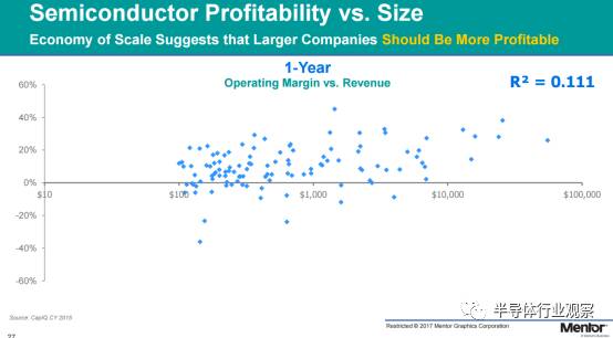 3.半導(dǎo)體產(chǎn)業(yè)的整合并非由規(guī)模經(jīng)濟(jì)驅(qū)動(dòng),因?yàn)楣镜囊?guī)模大小和盈利能力之間并無(wú)聯(lián)系。