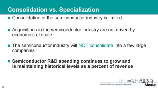 但是,在2017年8月24日Mentor舉行的一年一次的Mentor Forum技術(shù)論壇上,Mentor (A Siemens Business) 的CEO Walden C. Rhines先生發(fā)表了主題為“半導(dǎo)體合并vs專業(yè)化” 的精彩演講,為我們帶來(lái)了不一樣的觀點(diǎn)。半導(dǎo)體行業(yè)觀察編譯如下,與讀者分享。