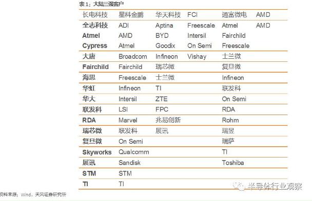 封裝企業(yè)在經(jīng)過M&A之后,優(yōu)質(zhì)的海外客戶逐漸導(dǎo)入,迎來了增單機(jī)會(huì)。一定要重視的是,封裝企業(yè)的客戶多樣化可以在為企業(yè)降低風(fēng)險(xiǎn)的同時(shí)提升規(guī)模效應(yīng)。在國(guó)內(nèi)企業(yè)的擴(kuò)張過程中,海外客戶的導(dǎo)入對(duì)于企業(yè)的增長(zhǎng)有很大的裨益。中國(guó)的封裝企業(yè)在完成重要的M&A之后(長(zhǎng)電科技收購星科金鵬,華天科技收購FCI,通富微電收購AMD封裝廠)除了技術(shù)上的引進(jìn),借助收購贏得Tier1的客戶是很重要的。而在企業(yè)快速增長(zhǎng)過程中,增加的重要海外客戶都是企業(yè)經(jīng)營(yíng)邊際上的提升。