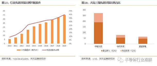 3)大陸封裝企業(yè)先進(jìn)封裝比例邊際改善優(yōu)于行業(yè)水準(zhǔn)
