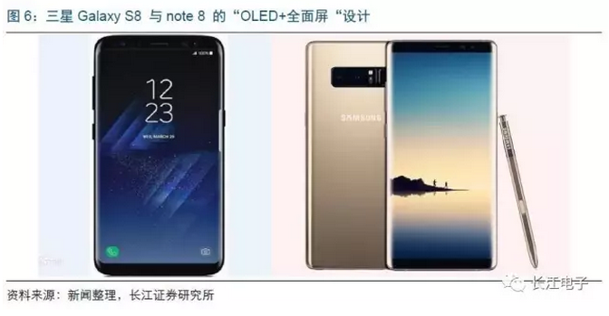 三星Galaxy系列手機(jī)包括2016年上市的Galaxy C7、S7、S7 Edge以及今年3月份在紐約發(fā)布的最新旗艦手機(jī)GalaxyS8與S8 Plus均采用OLED屏幕設(shè)計(jì)。紐約當(dāng)?shù)貢r間8月23日,三星發(fā)布了Note系列新品Galaxy Note 8。在外形方面,Note 8的造型延續(xù)了三星Note 7與S8的特點(diǎn),同樣采用OLED+全面屏的設(shè)計(jì)風(fēng)格。