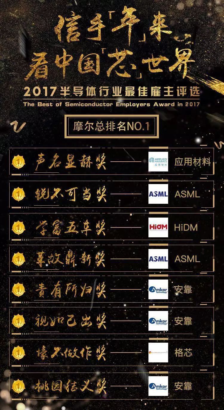 摩爾精英 ? 2017年度第一屆半導(dǎo)體行業(yè)最佳雇主榜單揭曉