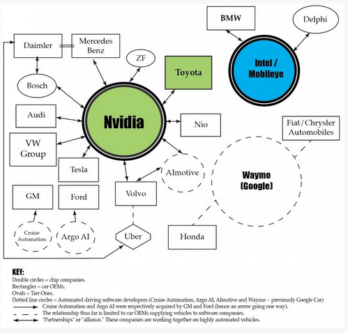 此外,在滿足車輛所有安全要求的情況下,Xavier 超級電腦功耗僅為 30 瓦。英偉達強大的技術儲備也吸引了大量合作伙伴,這一陣營的實力正在不斷增強。