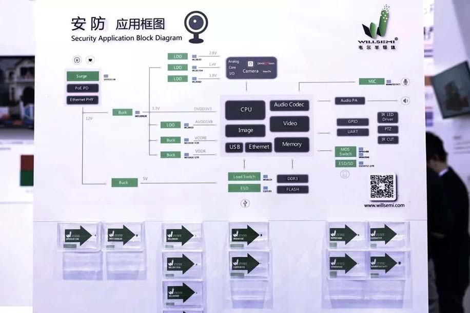 本屆CPSE上,豪威首次以集團(tuán)形象亮相,包含豪威科技、韋爾半導(dǎo)體和思比科微電子。針對(duì)安防市場(chǎng),豪威(高端產(chǎn)品)和思比科(高性價(jià)比產(chǎn)品)主要從事CMOS影像傳感器芯片產(chǎn)品的研發(fā);韋爾半導(dǎo)體主要產(chǎn)品包括保護(hù)器件 、功率器件、電源管理器件和模擬開(kāi)關(guān)等。