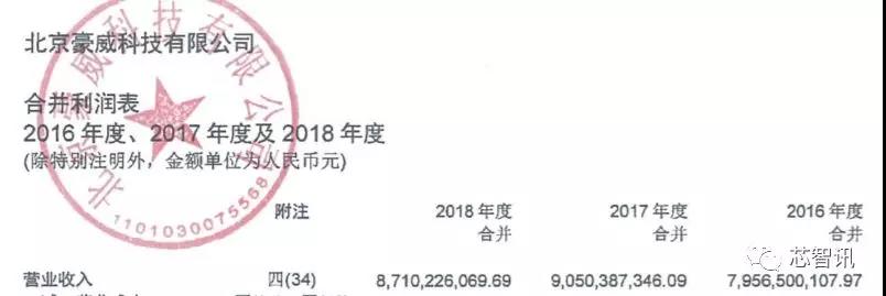 根據(jù)豪威科技的財(cái)務(wù)審計(jì)報(bào)告顯示,豪威科技的2018年的營收約為87.1億元。