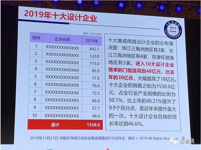 如果智芯微今年繼續(xù)維持增長的話(魏教授說,榜單上十大設(shè)計(jì)企業(yè)自身的增長率業(yè)高達(dá)46.6%”),那么其營收將達(dá)到魏教授公布的十大芯片設(shè)計(jì)廠商的第七名的72.5億元還是有可能的。