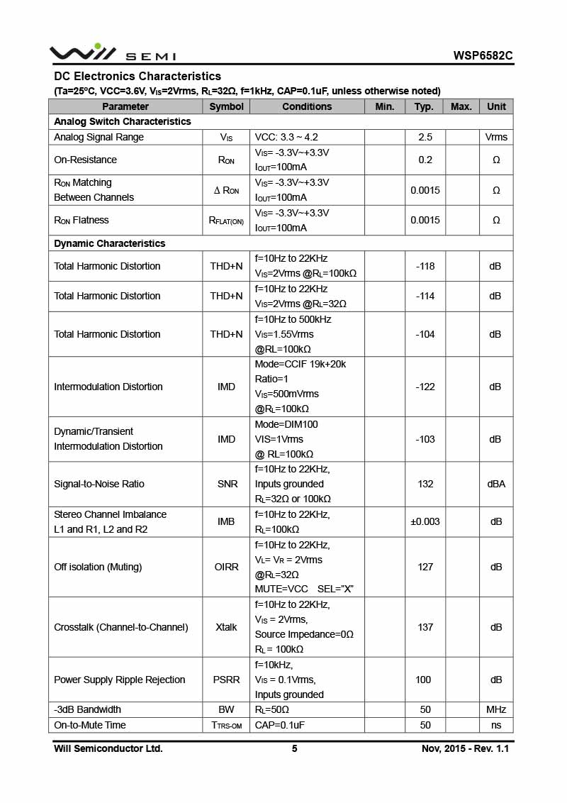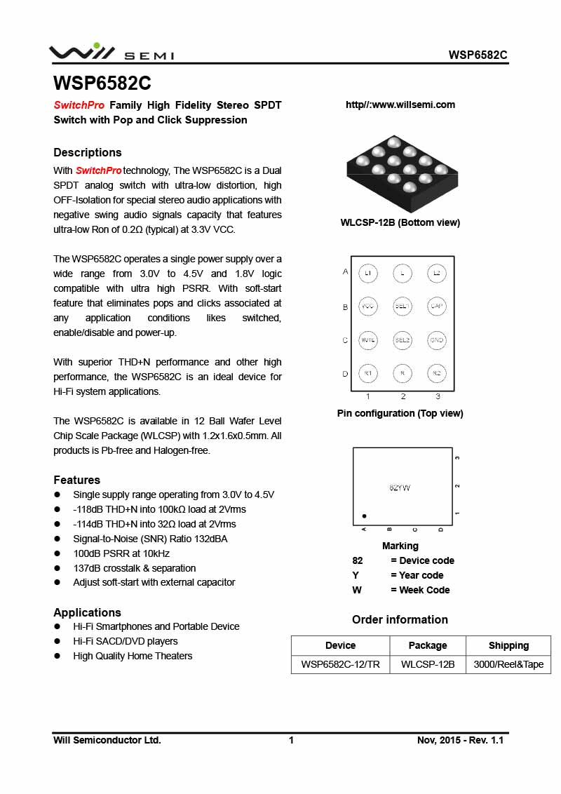 WSP6582C 韋爾模擬音頻開(kāi)關(guān)產(chǎn)品