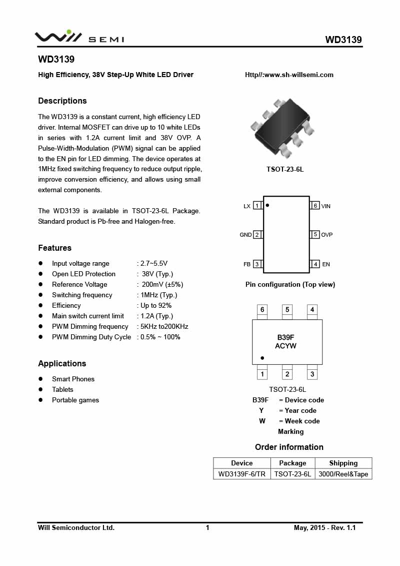 WD3139 韋爾電源管理LED 背光驅(qū)動(dòng)產(chǎn)品