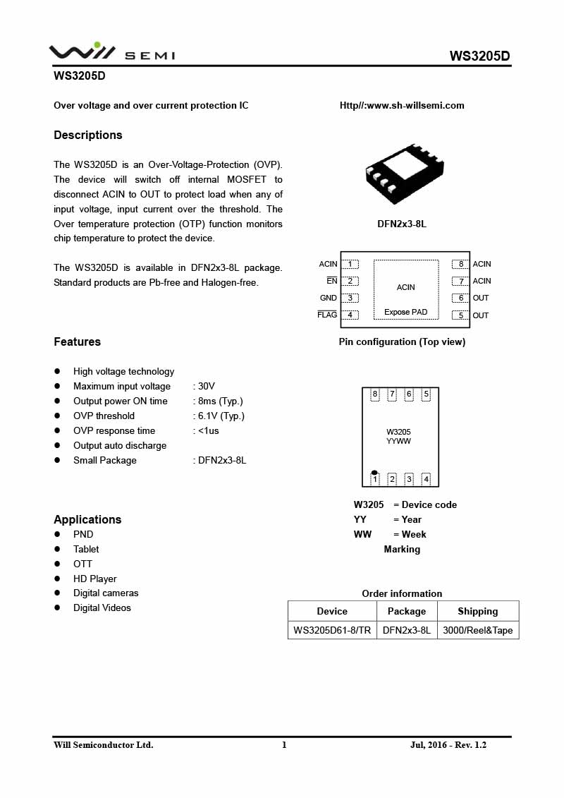 WS3205D 韋爾電源管理OVP過壓保護產(chǎn)品
