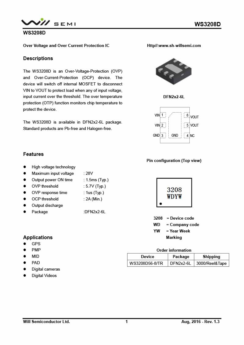 WS3208D 韋爾電源管理OVP過壓保護(hù)產(chǎn)品