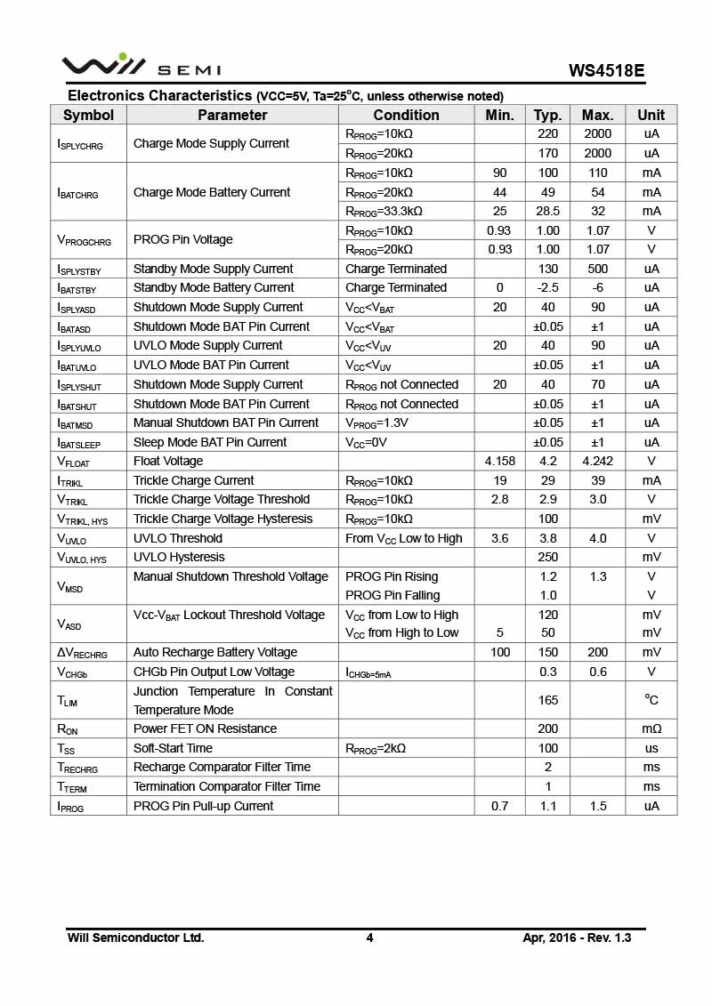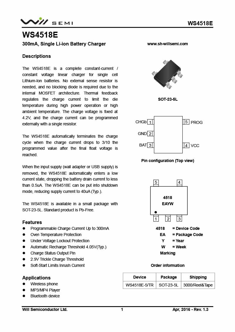 WS4518E 韋爾電源管理充電IC產(chǎn)品