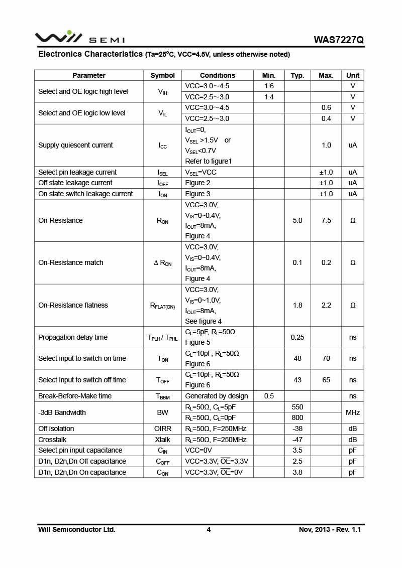 WAS7227Q 韋爾模擬數(shù)據(jù)開關(guān)產(chǎn)品