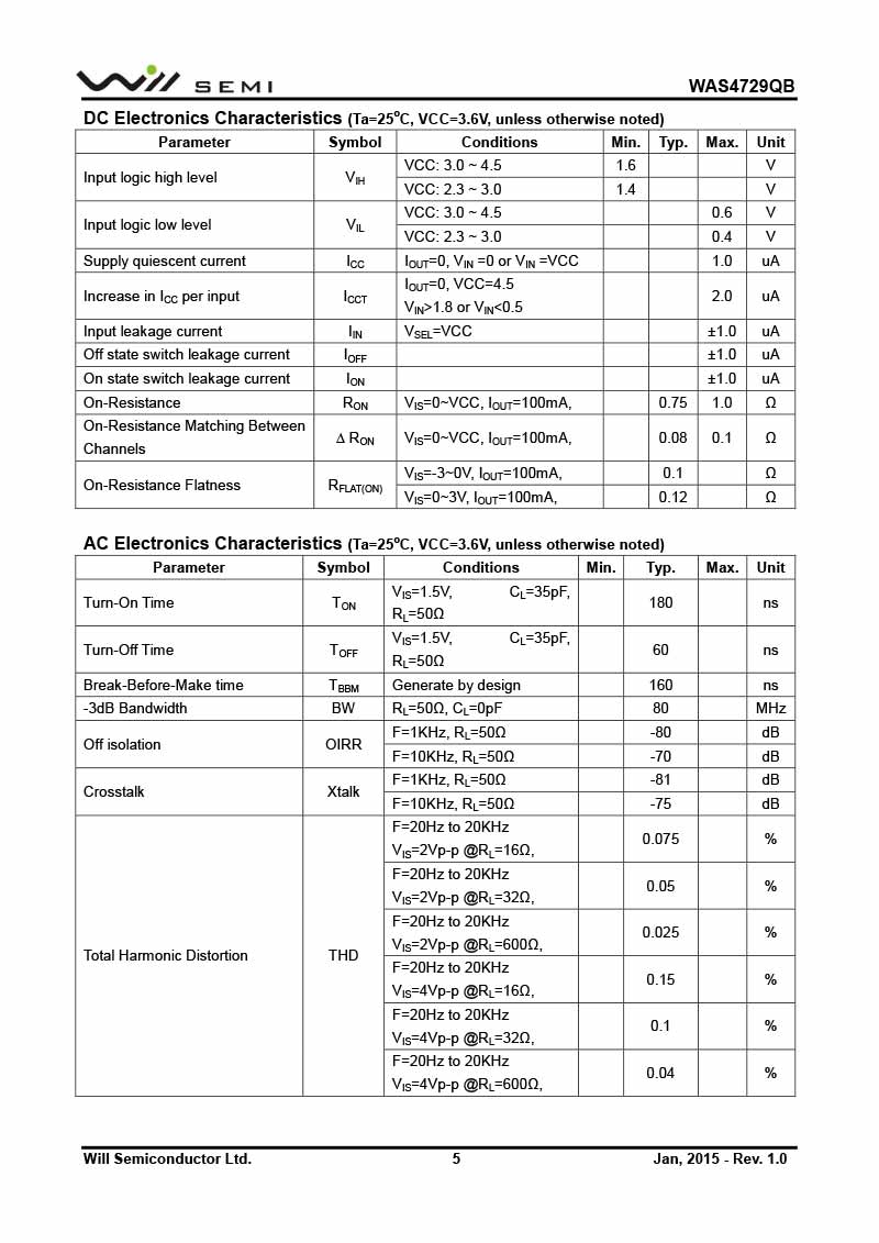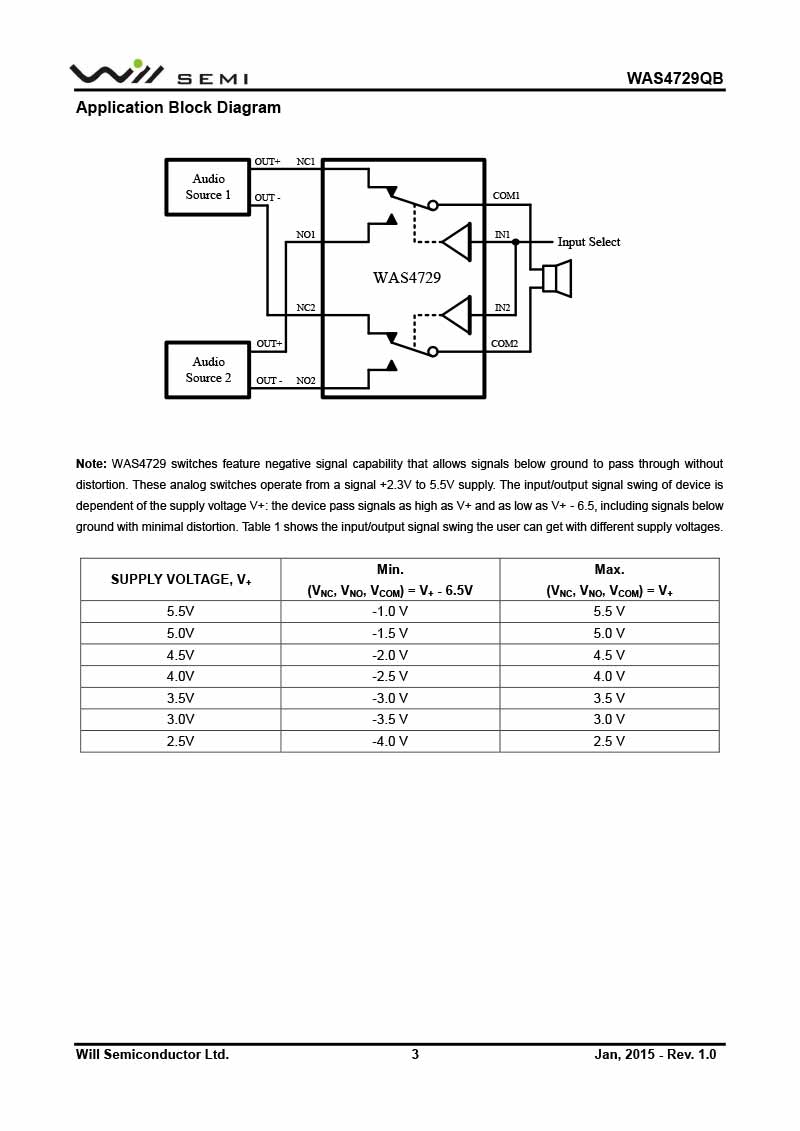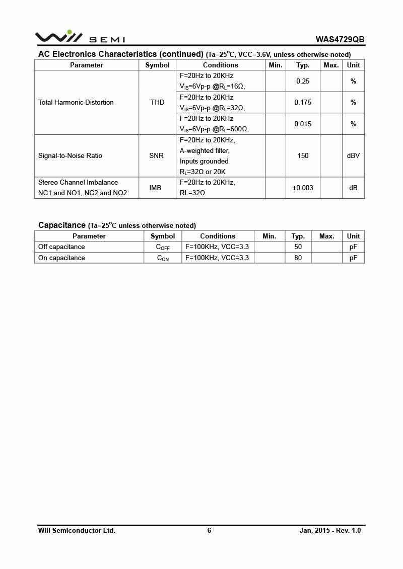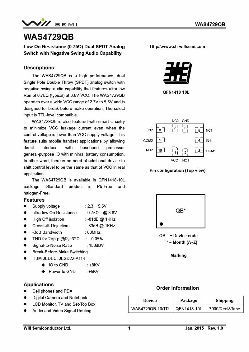 WAS4729QB 韋爾模擬音頻開關(guān)產(chǎn)品