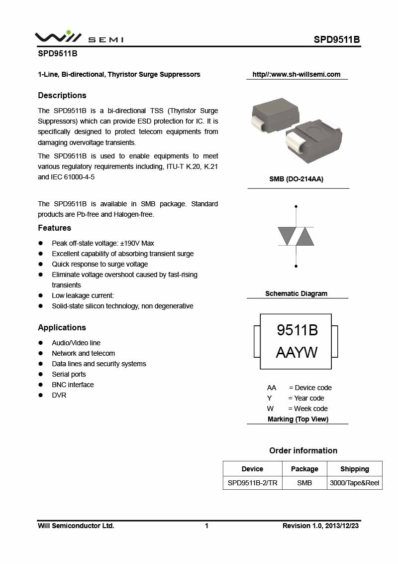 首頁 - 產(chǎn)品中心 - 代理產(chǎn)品 - 韋爾 / WILL -SPD9511B 韋爾固體放電管