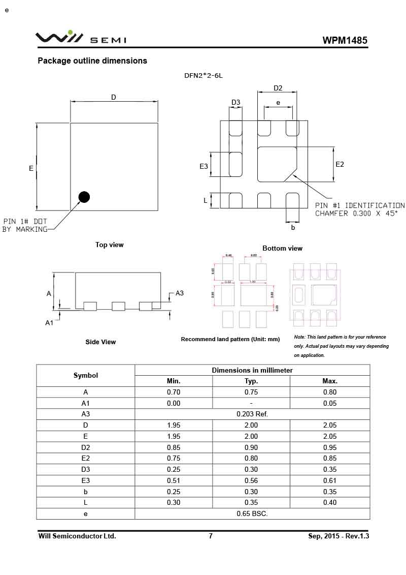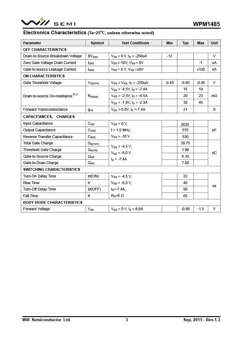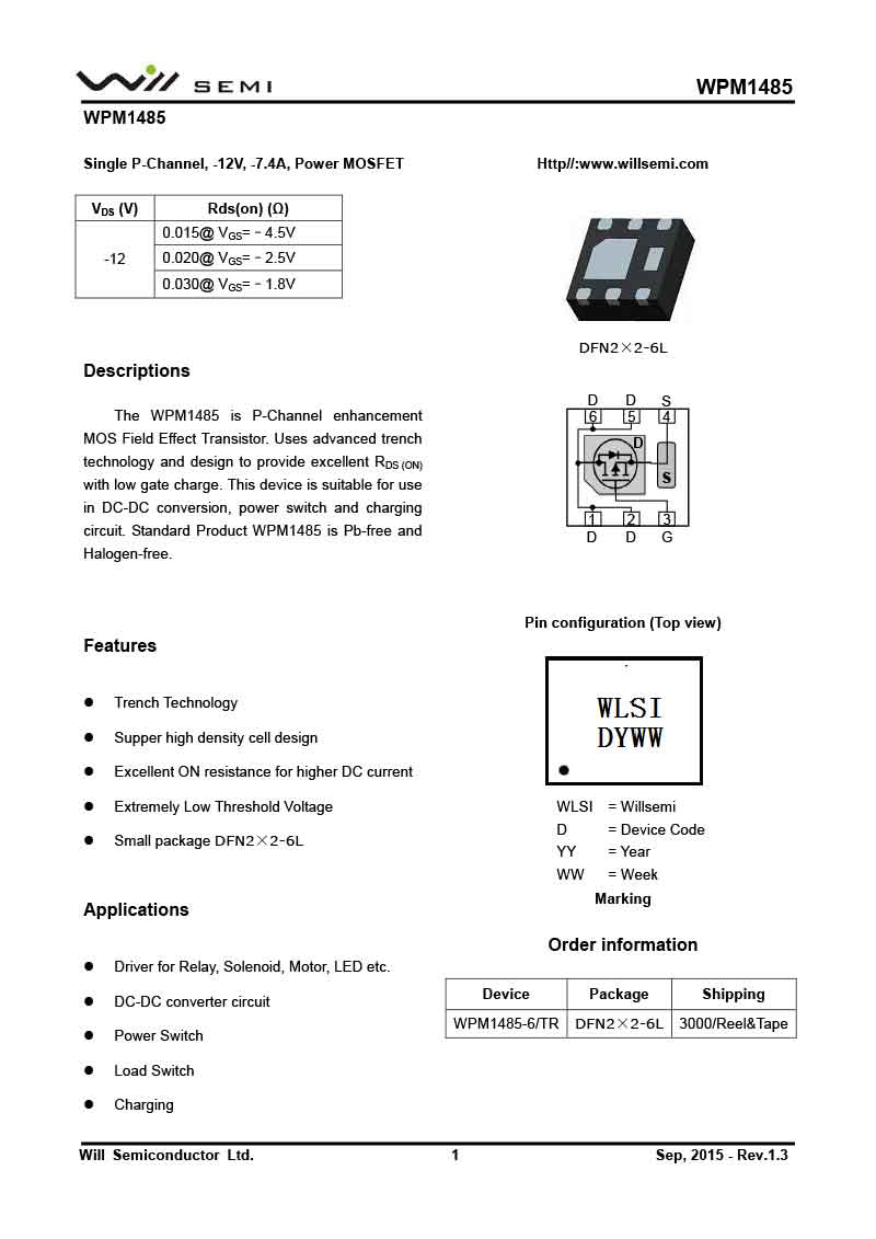 WPM1485 韋爾MOS管