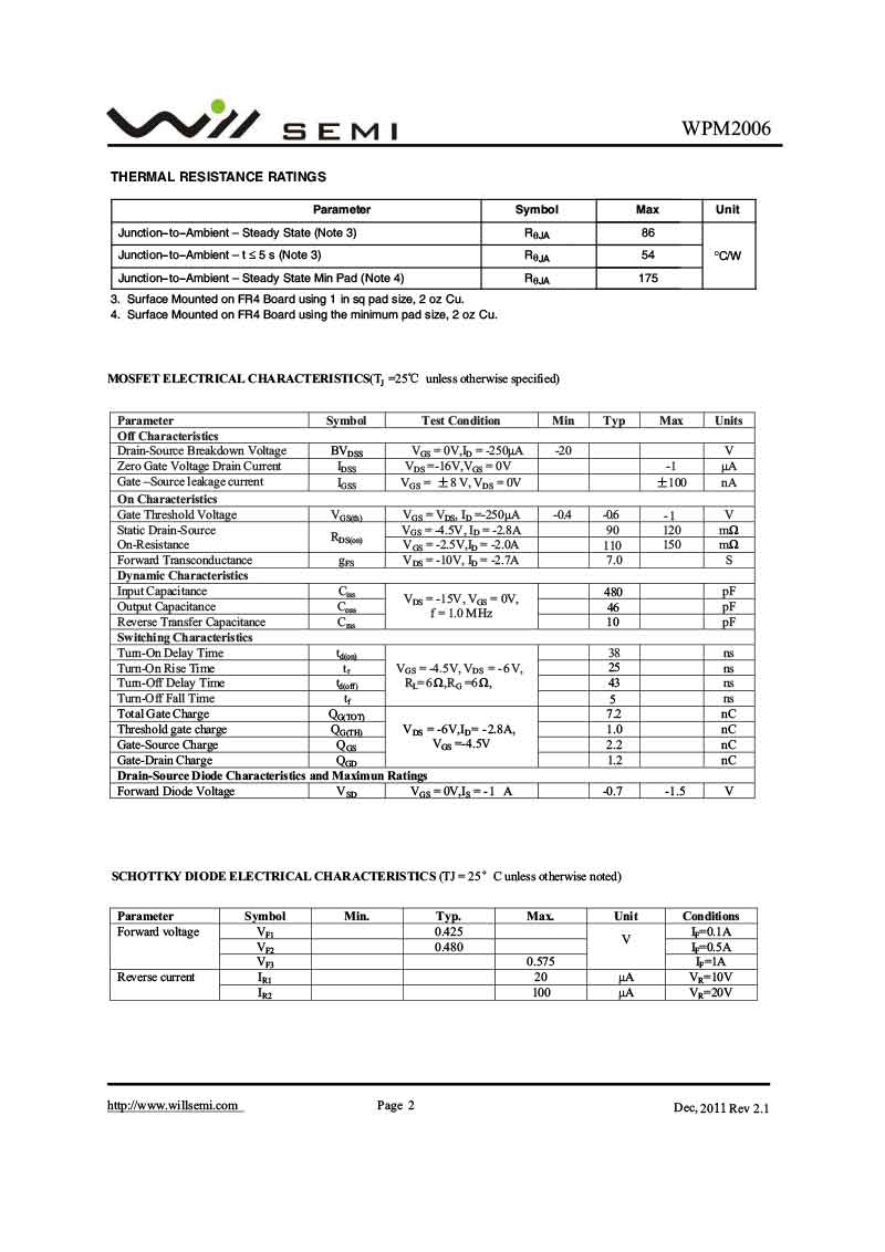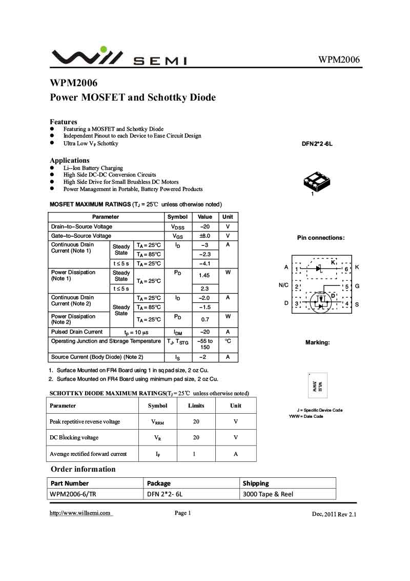 WPM2006 韋爾MOS管