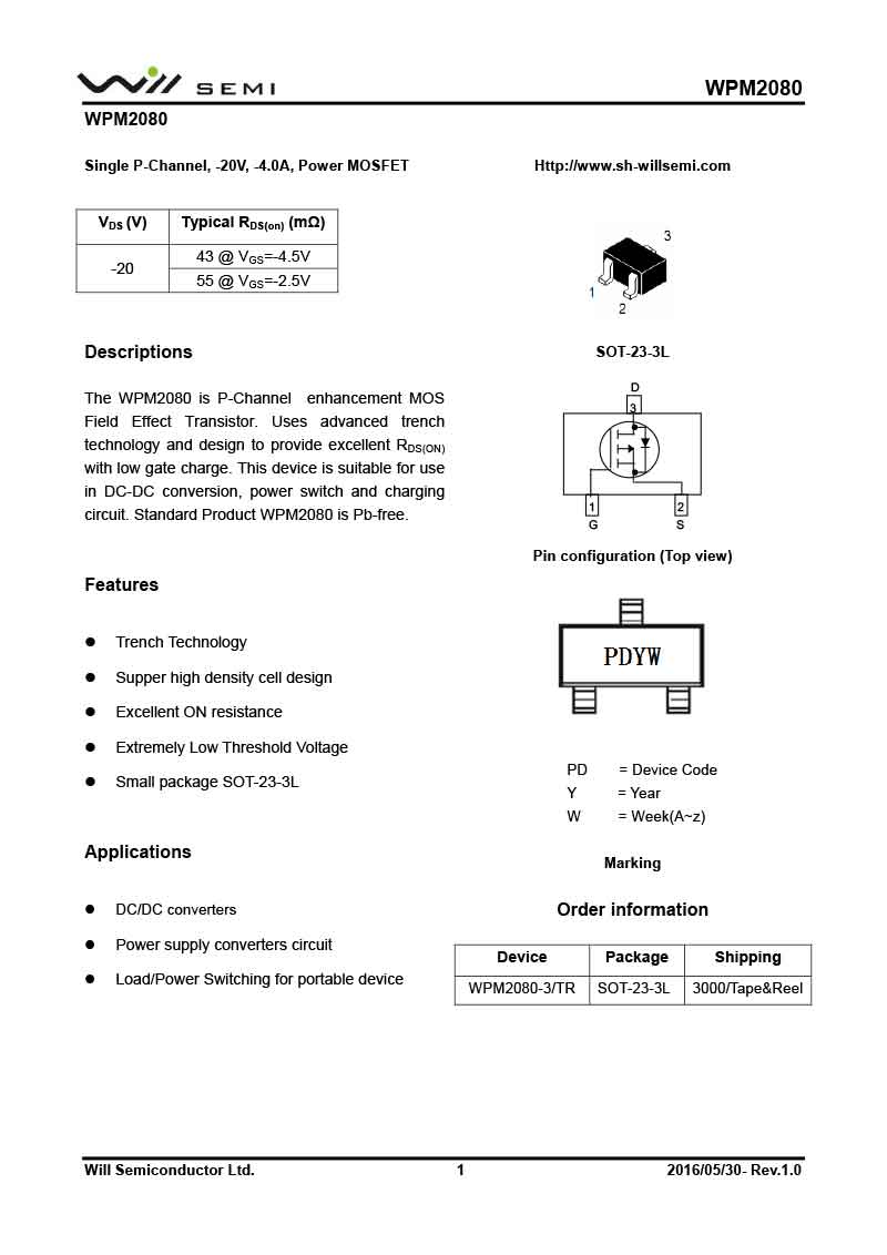 WCM2001 韋爾MOS管WPM2080