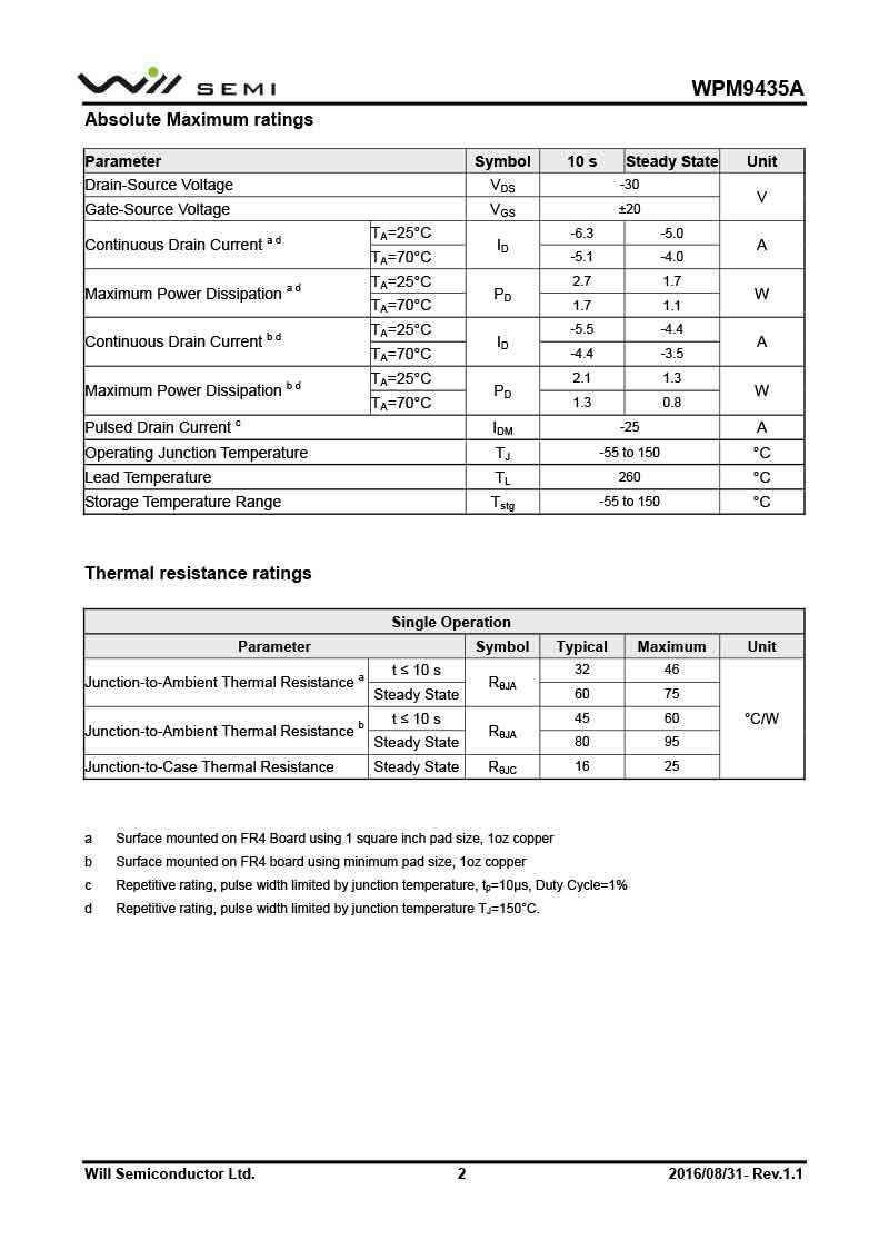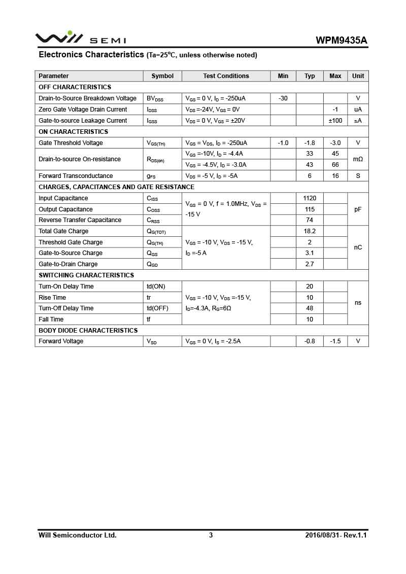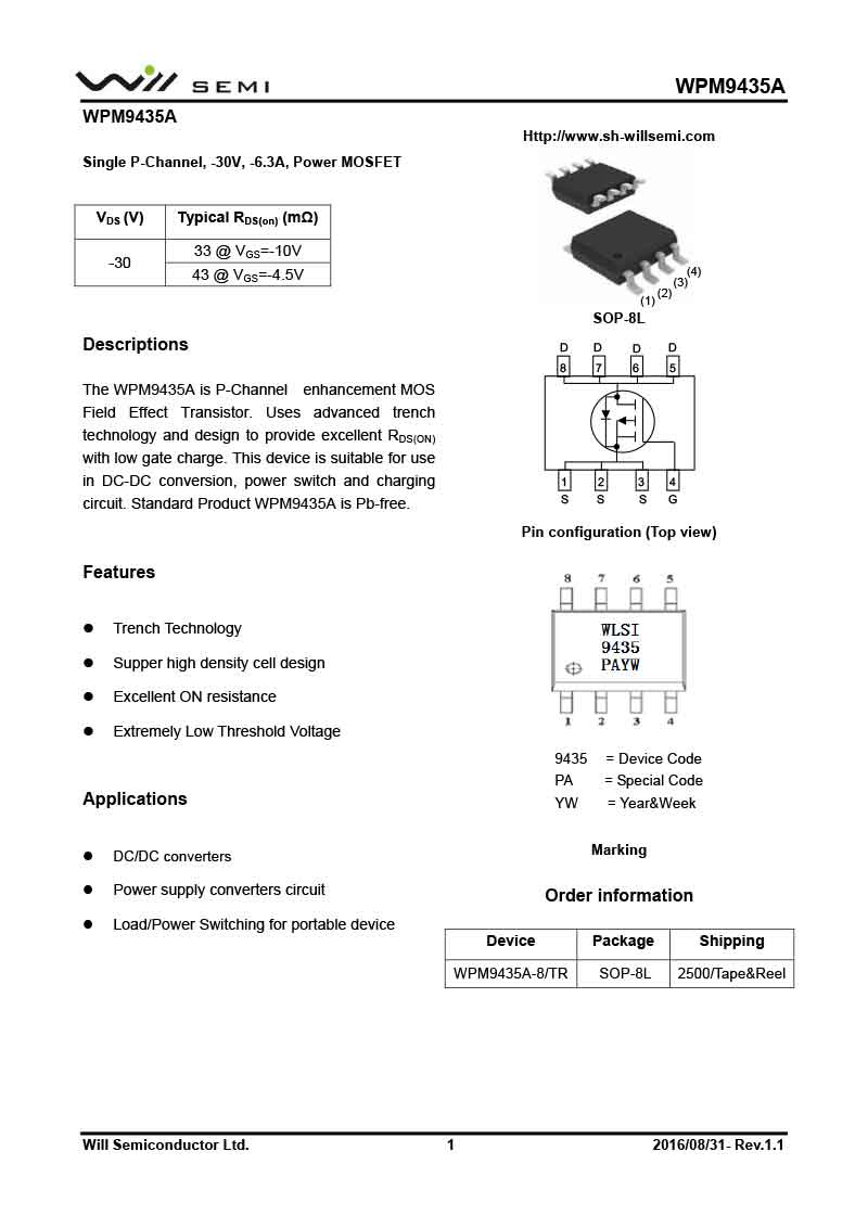 首頁 - 產品中心 - 代理產品 - 韋爾 / WILL -WPM9435A 韋爾MOS管