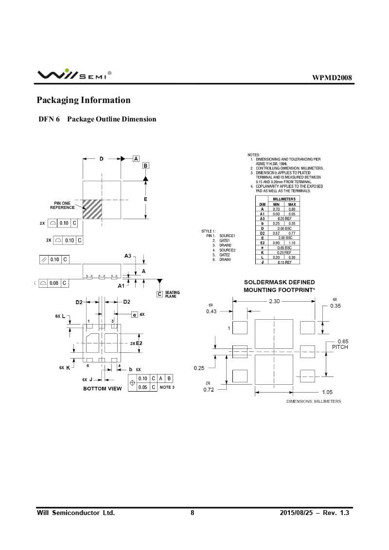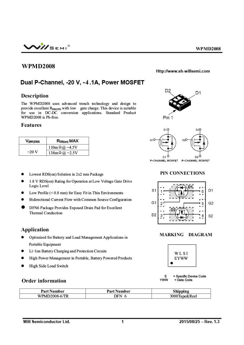 WPMD2008 韋爾MOS管