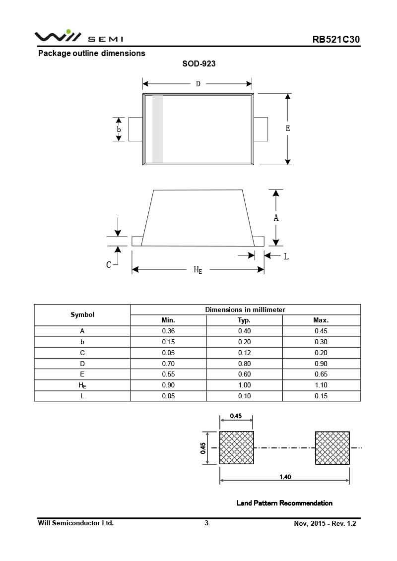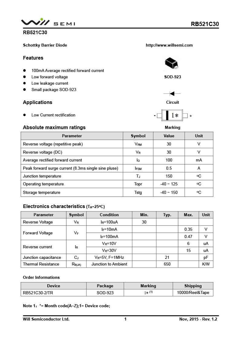 RB521C30 韋爾肖特基二極管