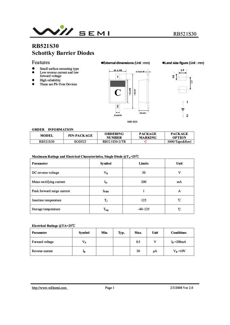 RB521S30 韋爾肖特基二極管