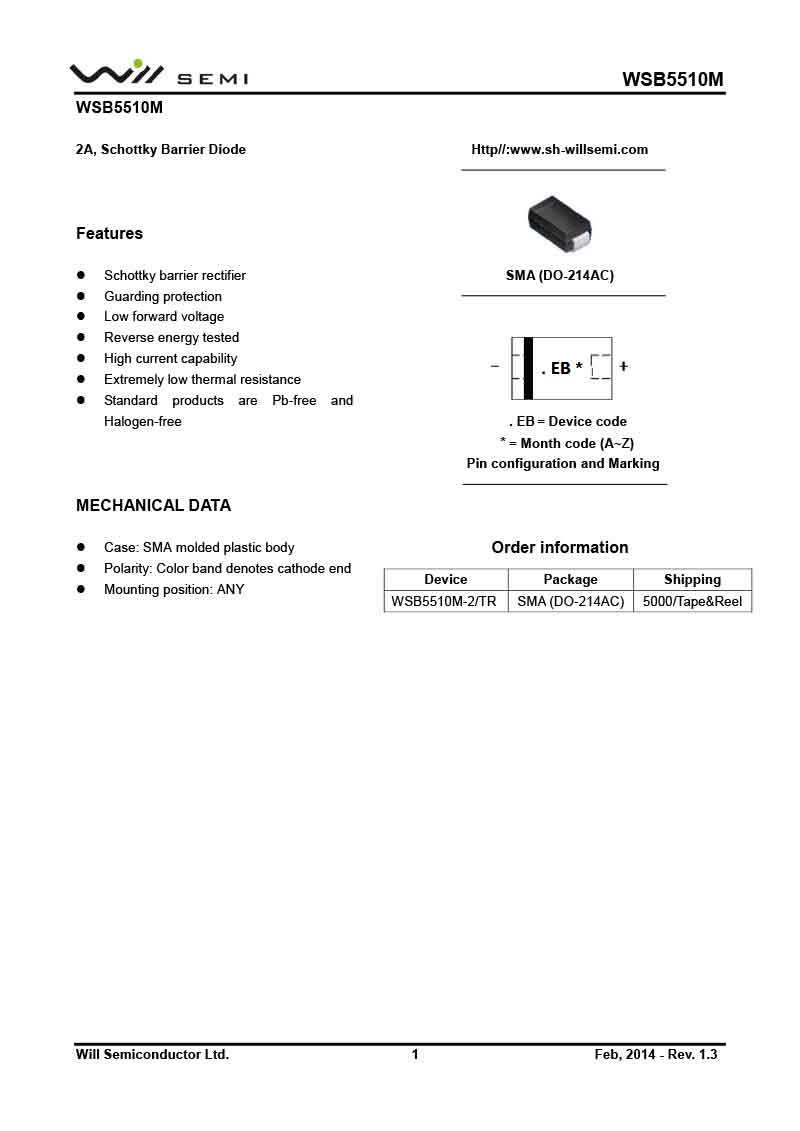 首頁 - 產品中心 - 代理產品 - 韋爾 / WILL -WSB5510M 韋爾肖特基二極管