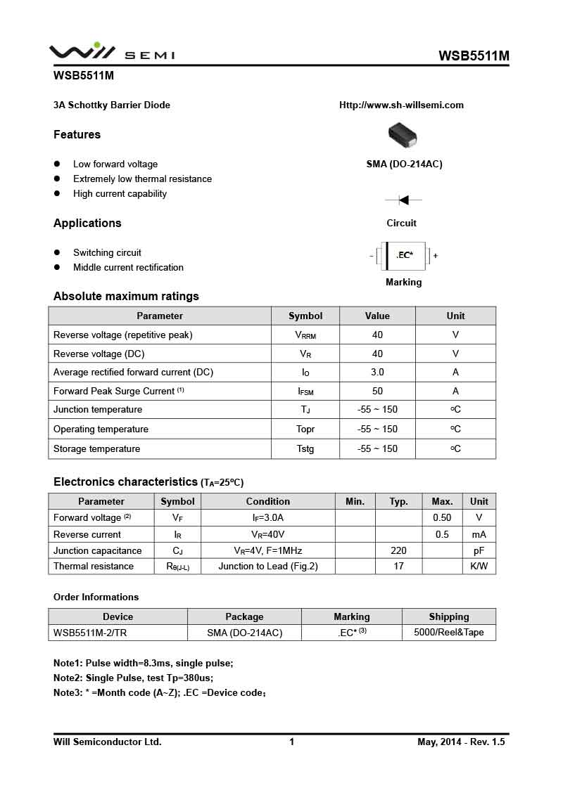 首頁 - 產(chǎn)品中心 - 代理產(chǎn)品 - 韋爾 / WILL -WSB5511M 韋爾肖特基二極管