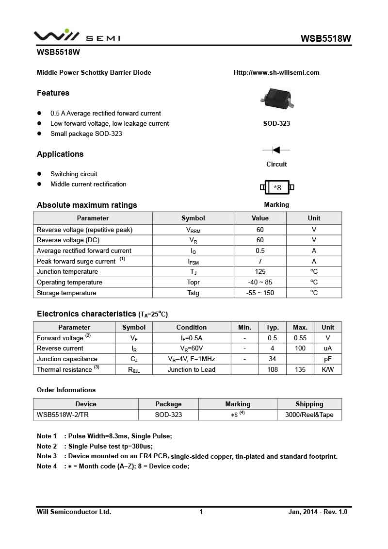 WSB5518W 韋爾肖特基二極管