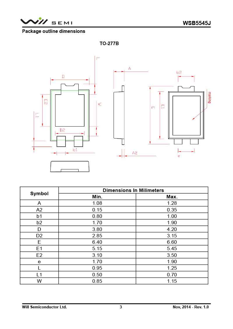 WSB5545J 韋爾肖特基二極管