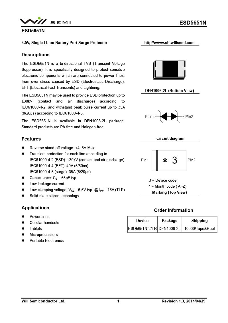 首頁 - 產(chǎn)品中心 - 代理產(chǎn)品 - 韋爾 / WILL -ESD5651N 韋爾小功率靜電TVS