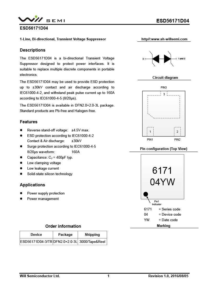 首頁(yè) - 產(chǎn)品中心 - 代理產(chǎn)品 - 韋爾 / WILL -ESD56171D04 韋爾小功率靜電TVS