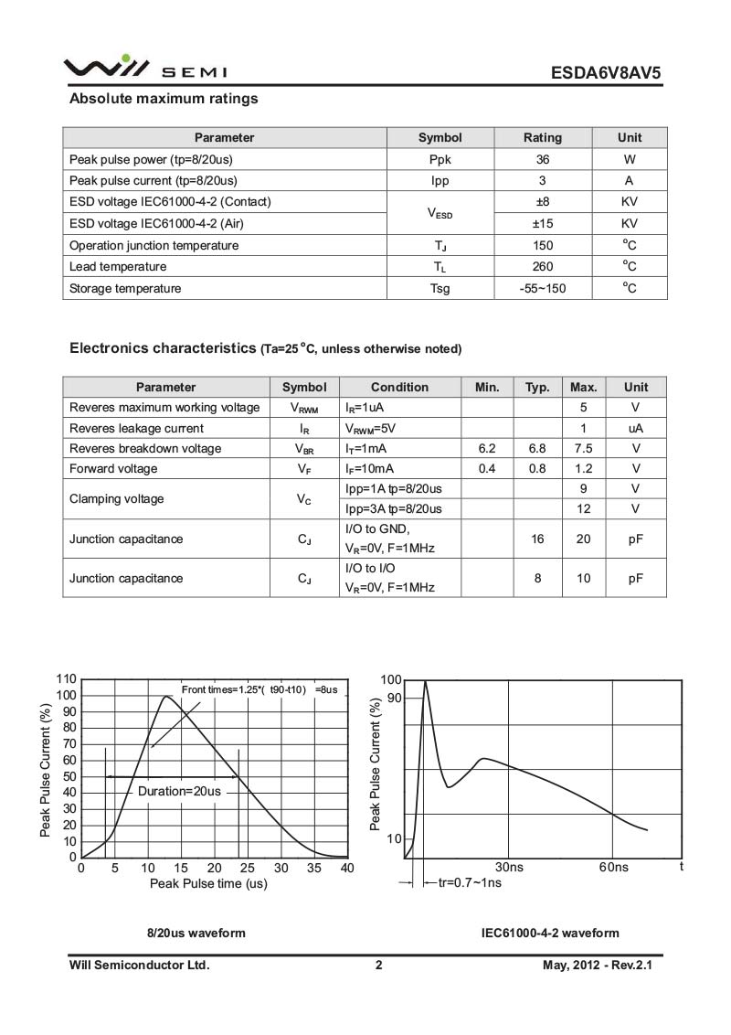 首頁 - 產(chǎn)品中心 - 代理產(chǎn)品 - 韋爾 / WILL -ESDA6V8AV5 韋爾小功率靜電TVS