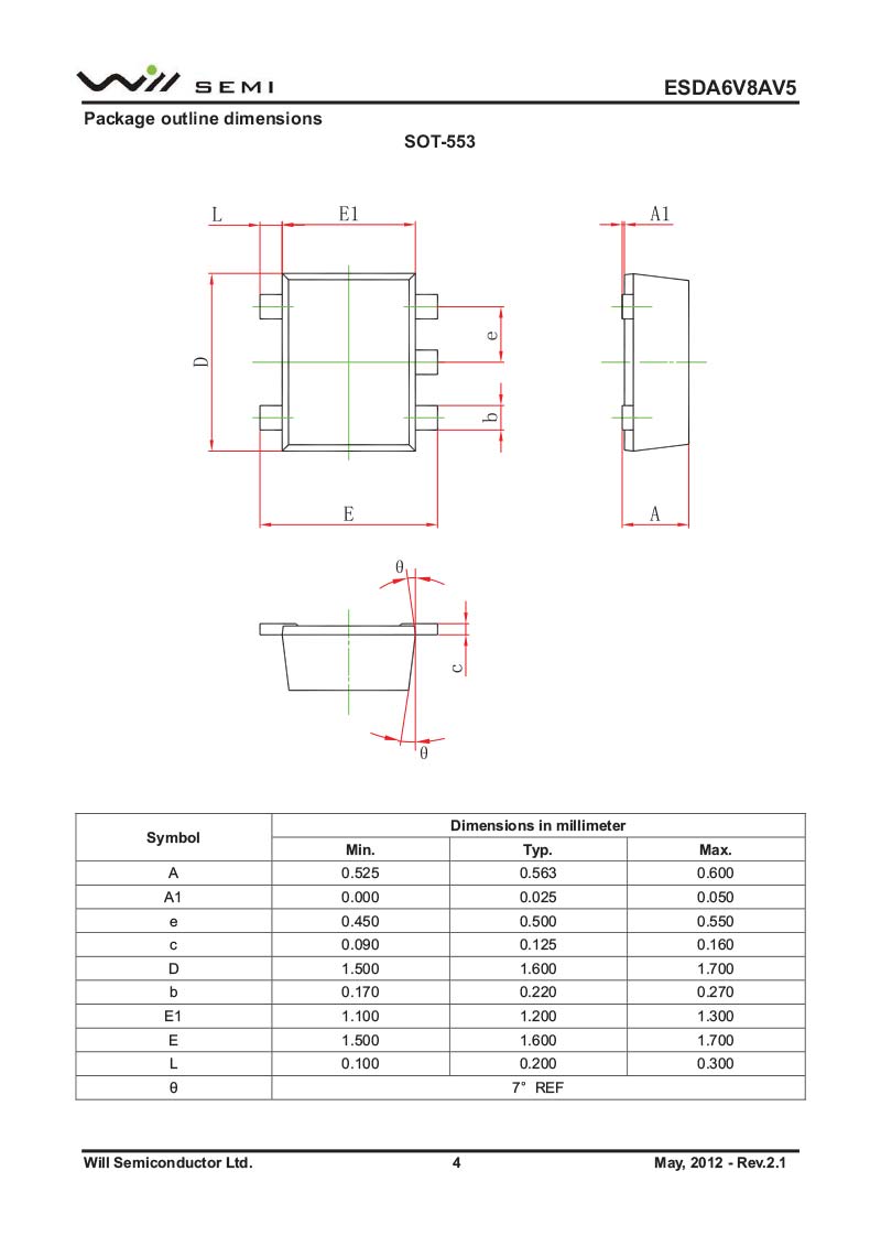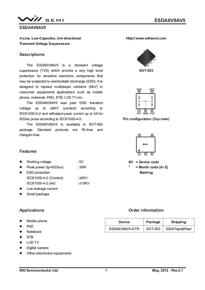 ESDA6V8AV5 韋爾小功率靜電TVS