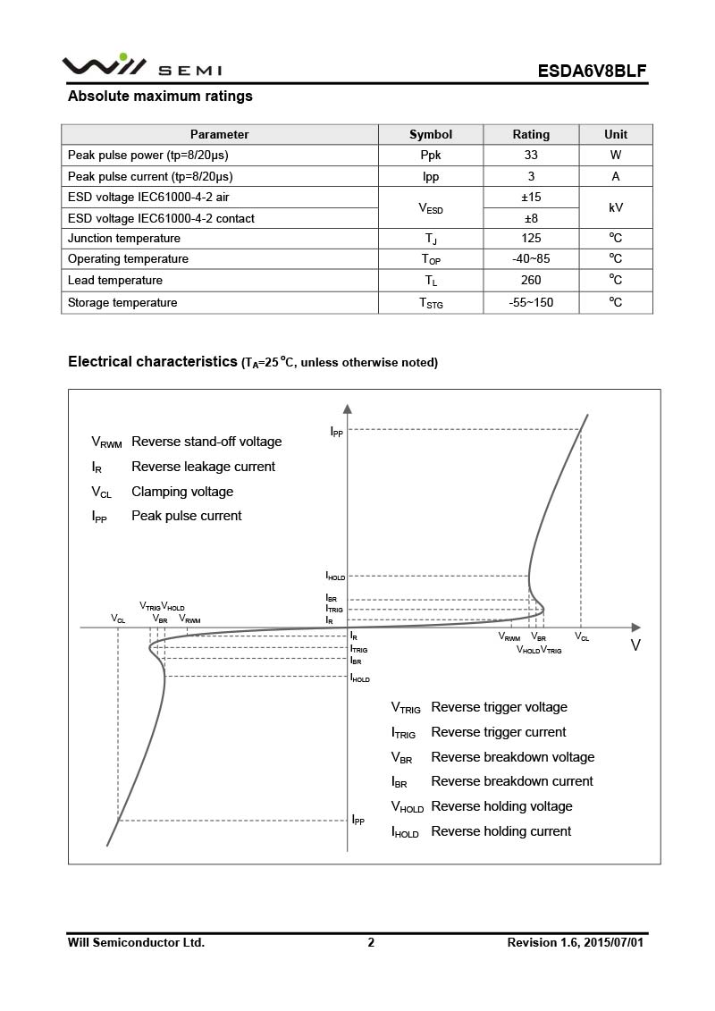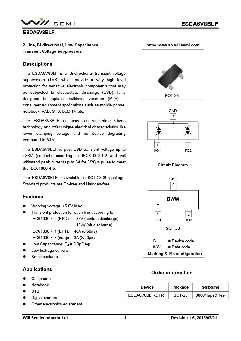 首頁 - 產(chǎn)品中心 - 代理產(chǎn)品 - 韋爾 / WILL -ESDA6V8BLF 韋爾小功率靜電TVS